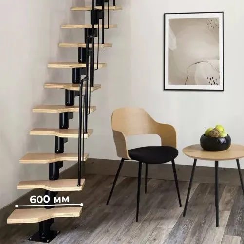 Модульная малогабаритная лестница Эксклюзив 2250-2475, Черный, Бук, Нержавеющая сталь