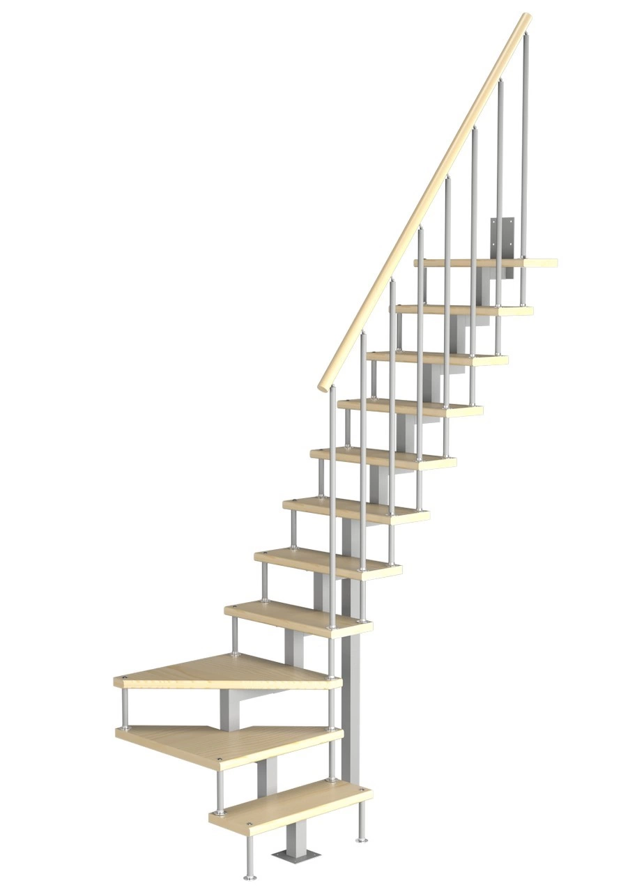 Модульная малогабаритная лестница Компакт 2475-2700, Белый, Бук, Нержавеющая сталь