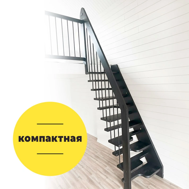 Модульная малогабаритная лестница Компакт 2700-2925, Черный, Лиственница, Нержавеющая сталь