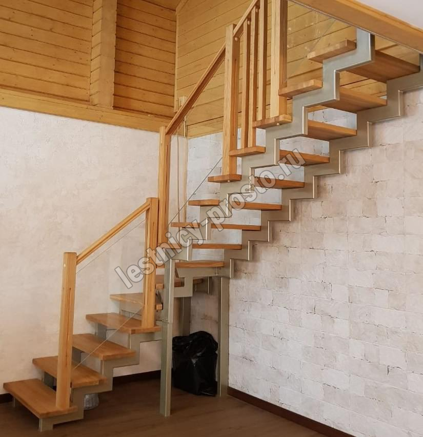 У данного варианта лестницы поворот реализован через забежные ступени. Под заказ возможно изготовление каркаса под поворотную площадку.