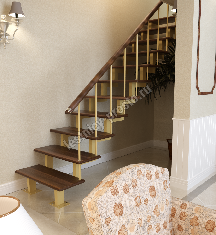 Лестница Prosto Double 50×100 прямая, ступени лиственница