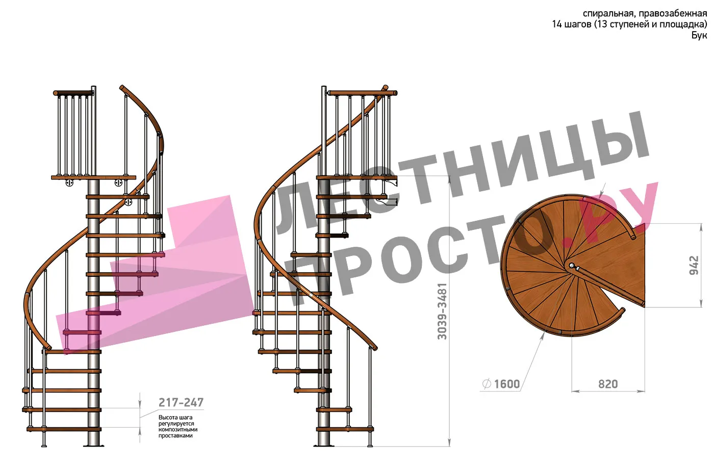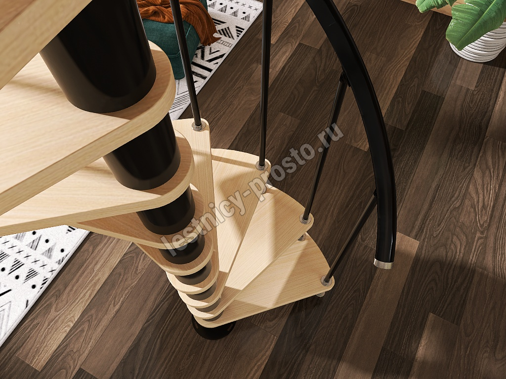 Винтовая лестница Prosto Spiral Black D160см, h303.9-348,1 см, бук