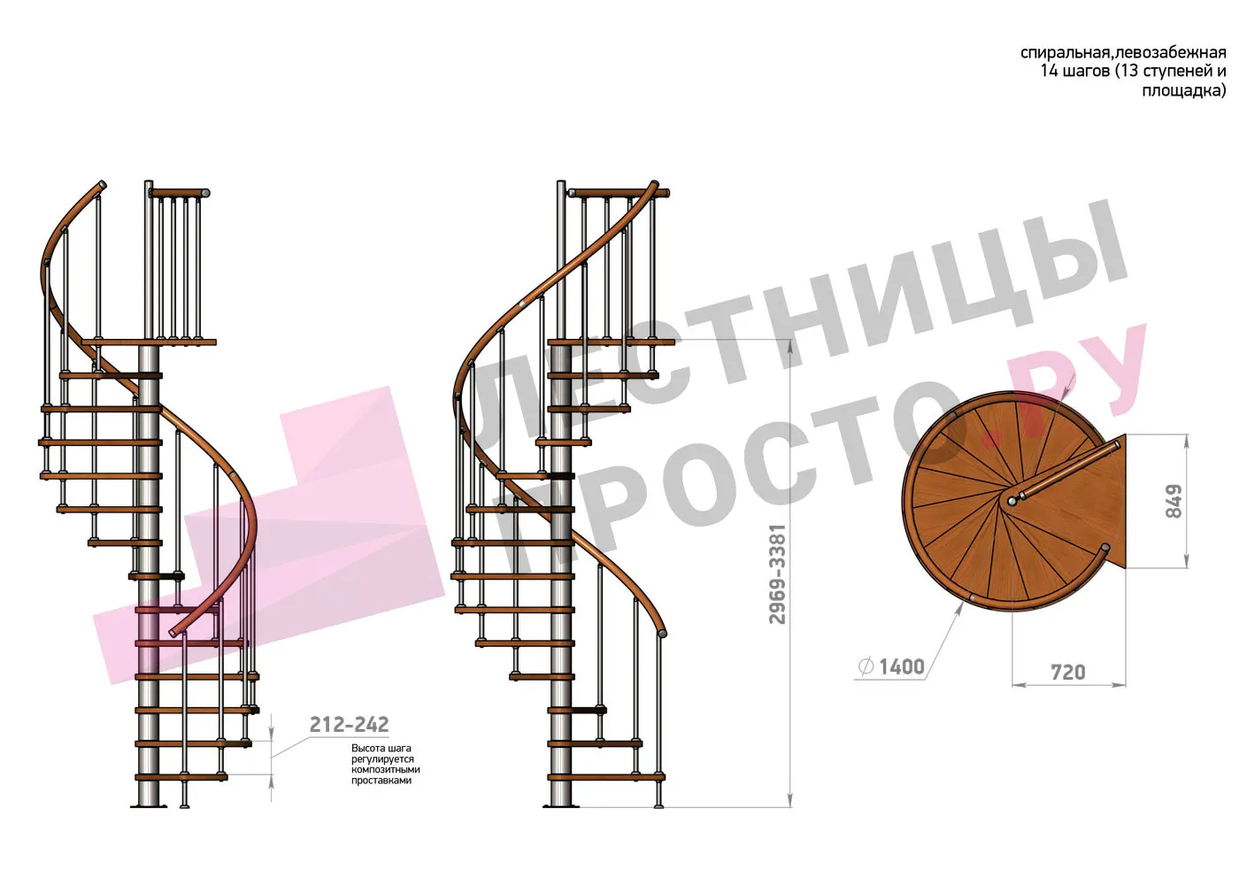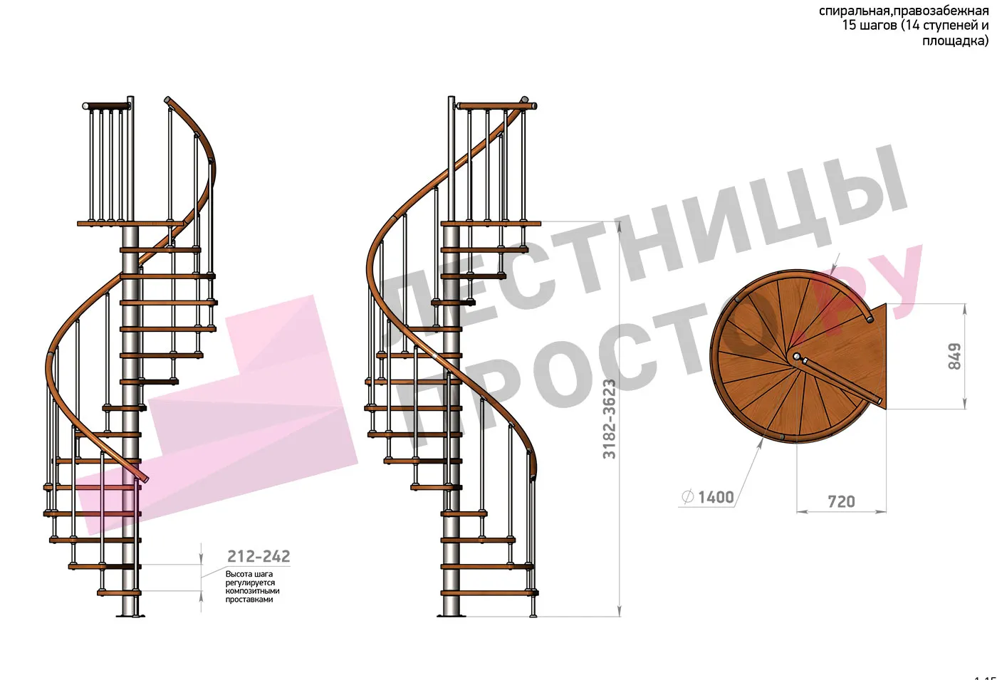 | Винтовая лестница Prosto Spiral Black D140см, h296.9-338.1 см |