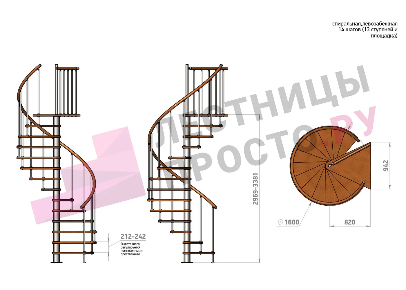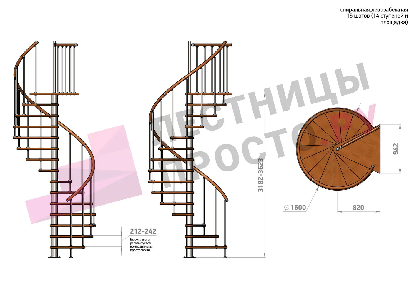 | Винтовая лестница Prosto Spiral Black D160см, h275.7-313.9 см |