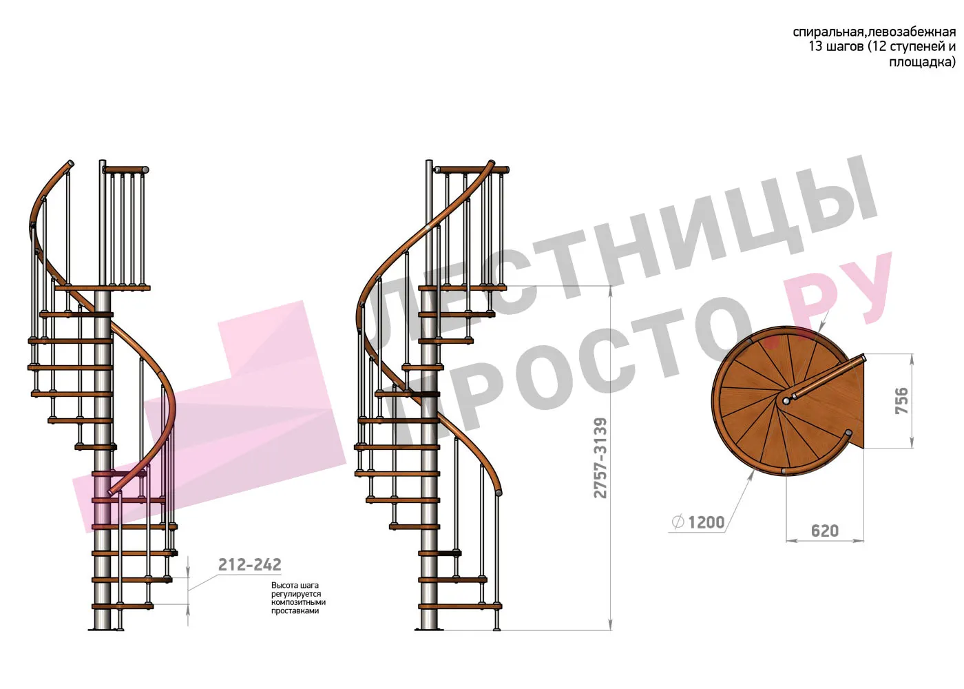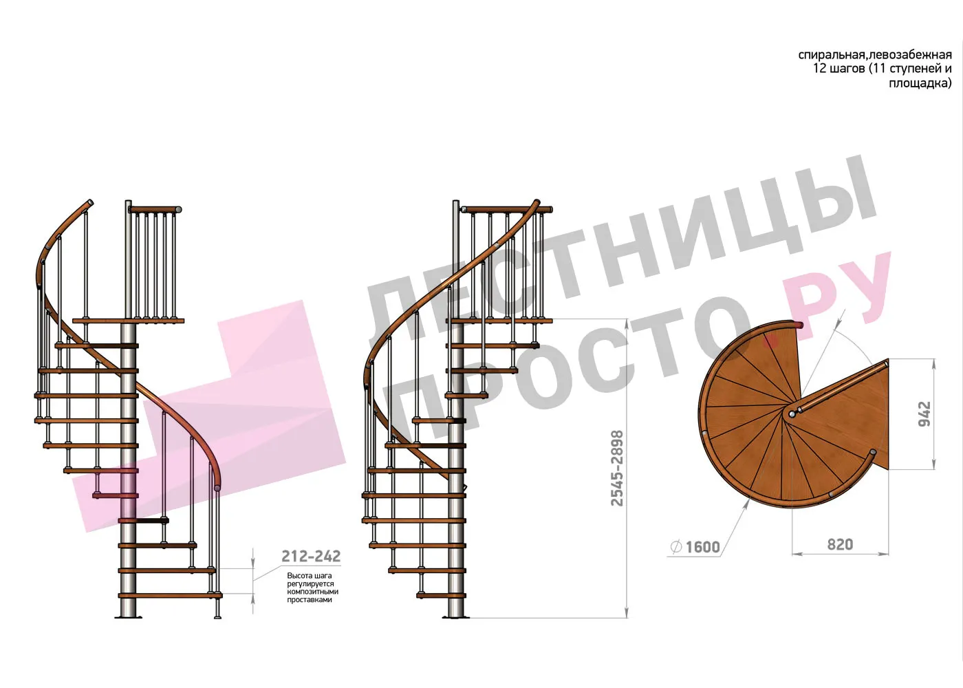 | Винтовая лестница Prosto Spiral Black D120см, h318.2-362.3 см |