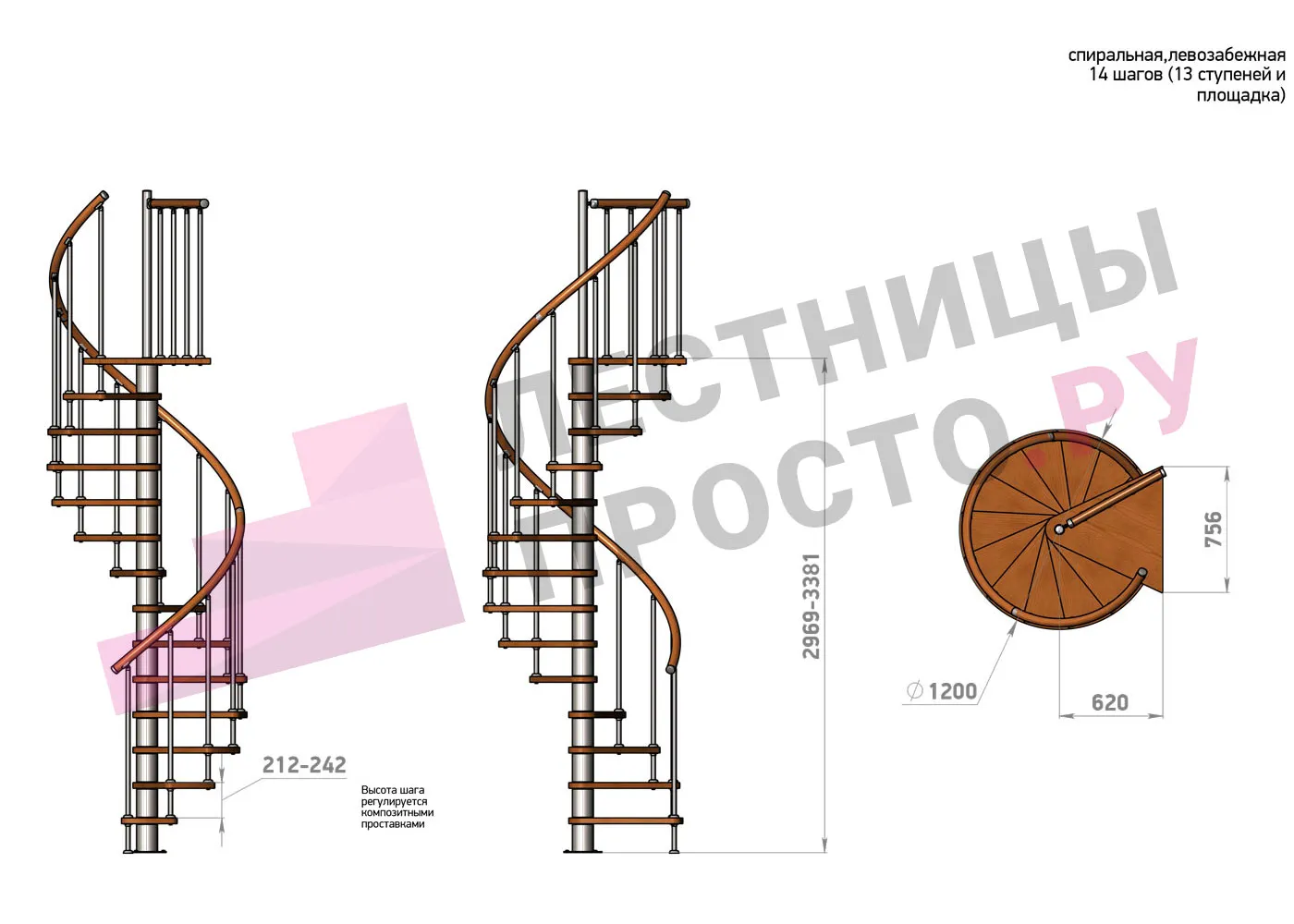 | Винтовая лестница Prosto Spiral Black D120см, h296.9-338.1 см |