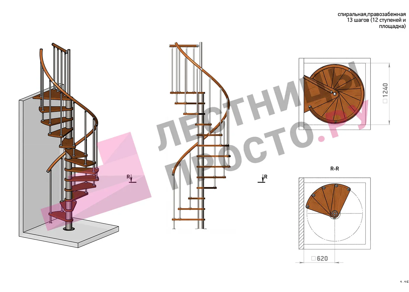 Решение об ориентации поворота принимается при сборке лестницы (комплект собирается и в правозабежную, и в левозабежную лестницу).