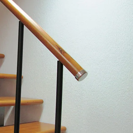 Стальные стойки Ф25мм (по одной на ступень) + ПВХ поручень Ф50.