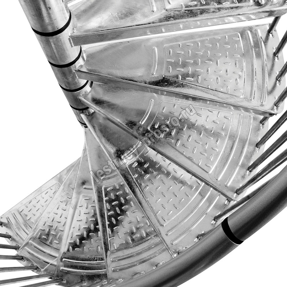 Благодаря возможности регулировать высоту шага с помощью пластиковых вставок (входят в базовый комплект), высоту лестницы можно варьировать в пределах от 2730 до 3000 мм. Ступени лестницы изготовлены со специальным, антискользящим рельефом.