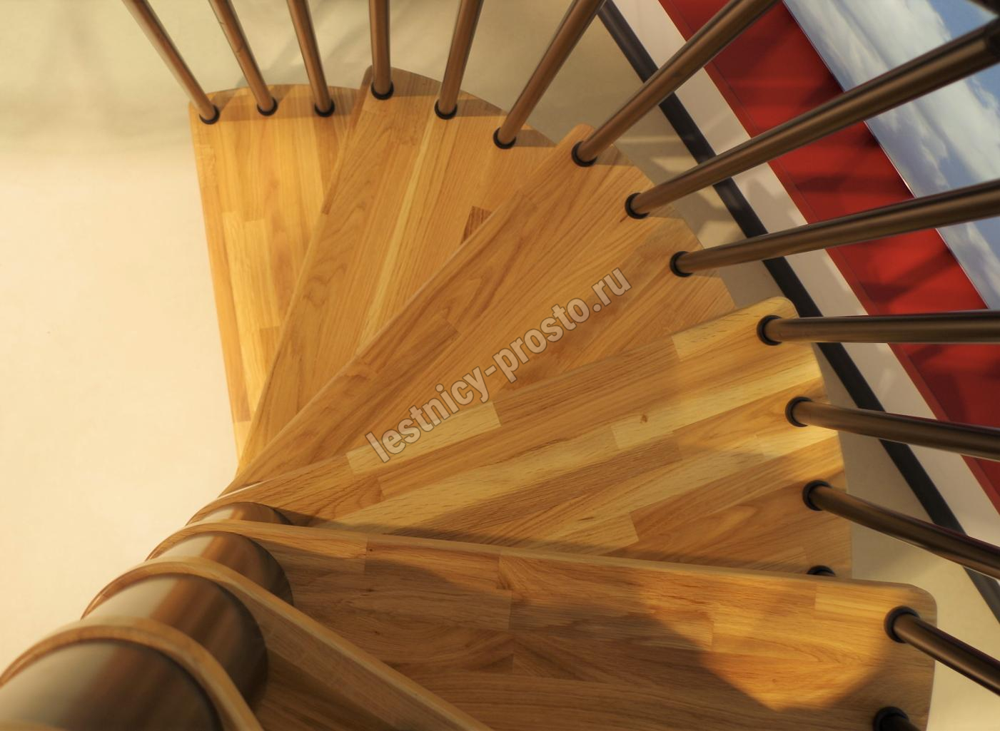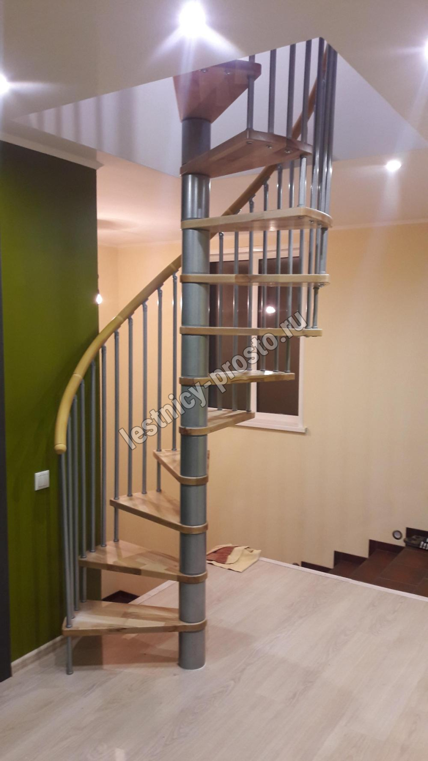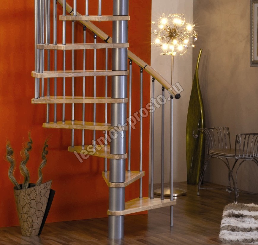 Винтовая лестница SPIRAL WOOD d140 см, серебро, лакированный дуб