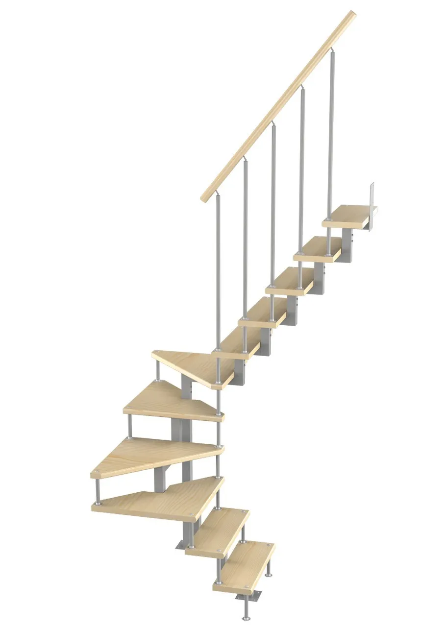 Винтовая лестница SPIRAL WOOD d120 см, серебро, лакированный бук