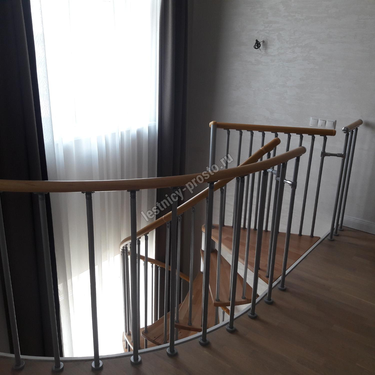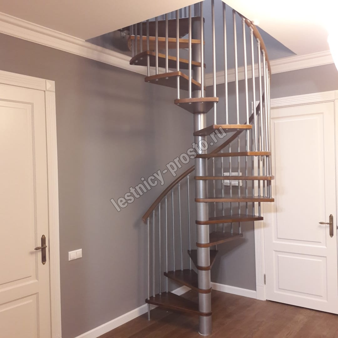 Лестница представлена в двух вариантах: с поворотом направо и с поворотом налево. Благодаря возможности регулировать высоту шага с помощью пластиковых вставок (входят в базовый комплект), высоту лестницы можно варьировать в пределах от 2860 до 3090 мм. Кроме того, купив дополнительную секцию для этой лестницы, можно поднять высоту до 3320 мм. Поручень изготовлен из массива бука в тон ступеням. Ступени и поручень покрыты износостойким защитным лаком.