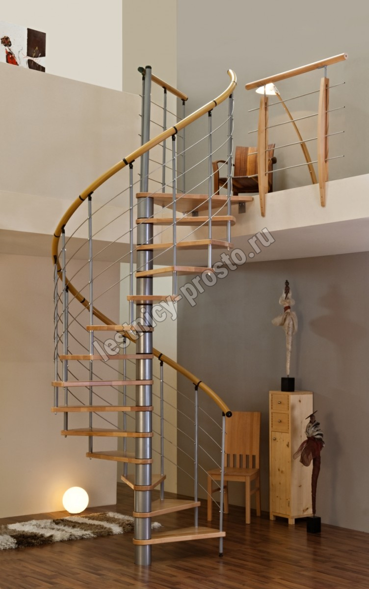 Винтовая лестница Venezia d140 см, серебро, дуб лакированный