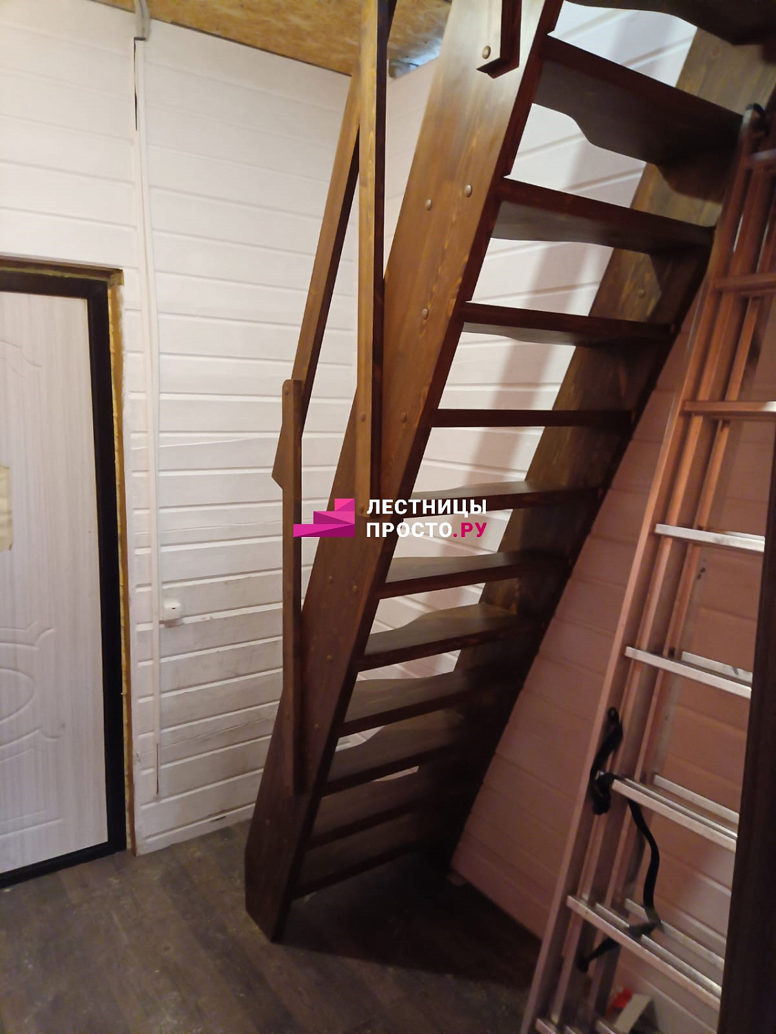 У нас есть похожая готовая лестница Лестница из сосны К-007М/40