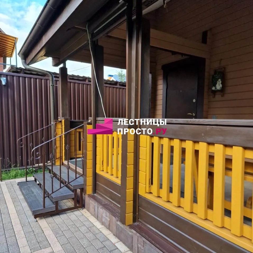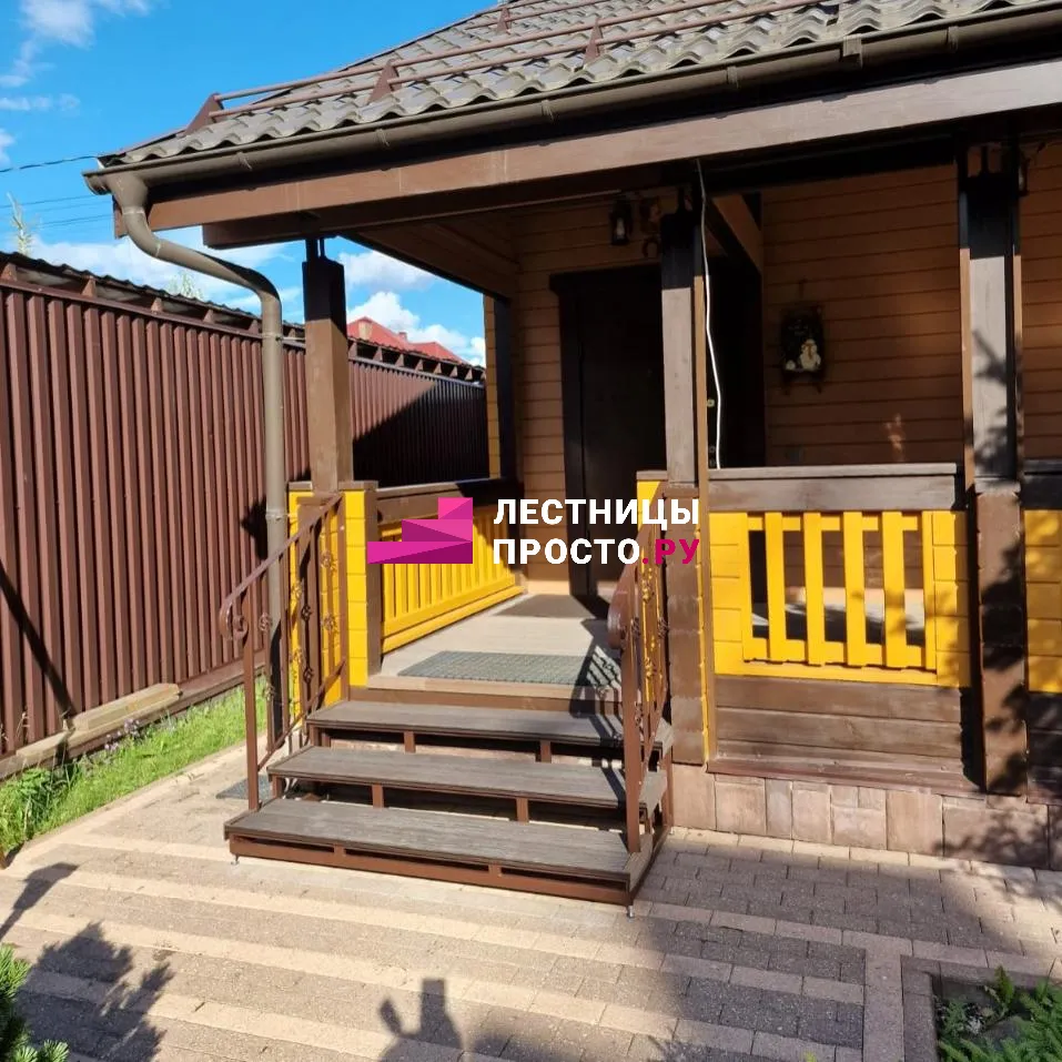 Металлическая лестница с дубовыми ступенями и ограждением LP-1-20