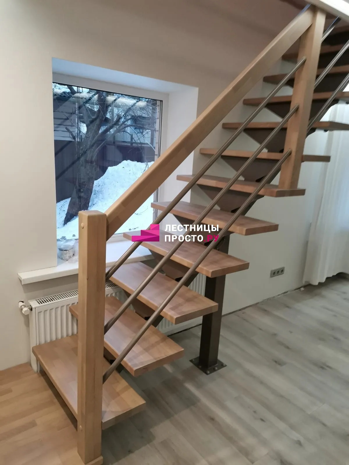 Лестница на центральном каркасе 100х100, ступени ясень ЛП 700